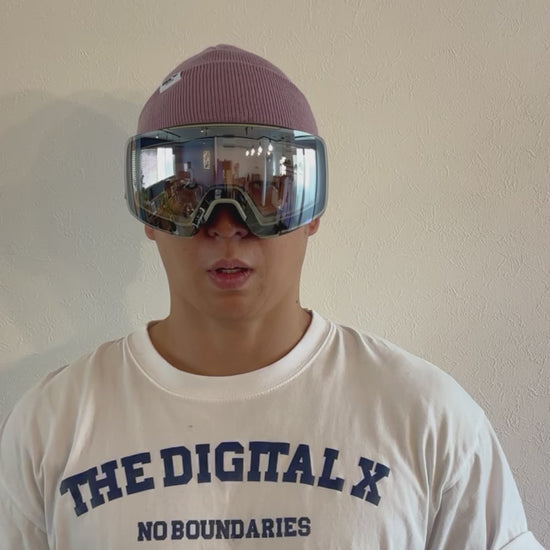 "Vent", a revolutional snow goggles, has Flip up lens with hyper photochromic lens for all activities in the snowy mountains. The Flip up lens makes easy ventilated inside air to get fresh air. The new photochromic lens adjust the lens's color darker and clear depend on UV level. Lens replacement using magnets is very easy. Visibility is clear even in the snow, and the silicone strap provides a comfortable fit, the frame is easy to fit even Japanese people, and the Asian fit is attractive. The strap is anti-slip and supports secure attachment.